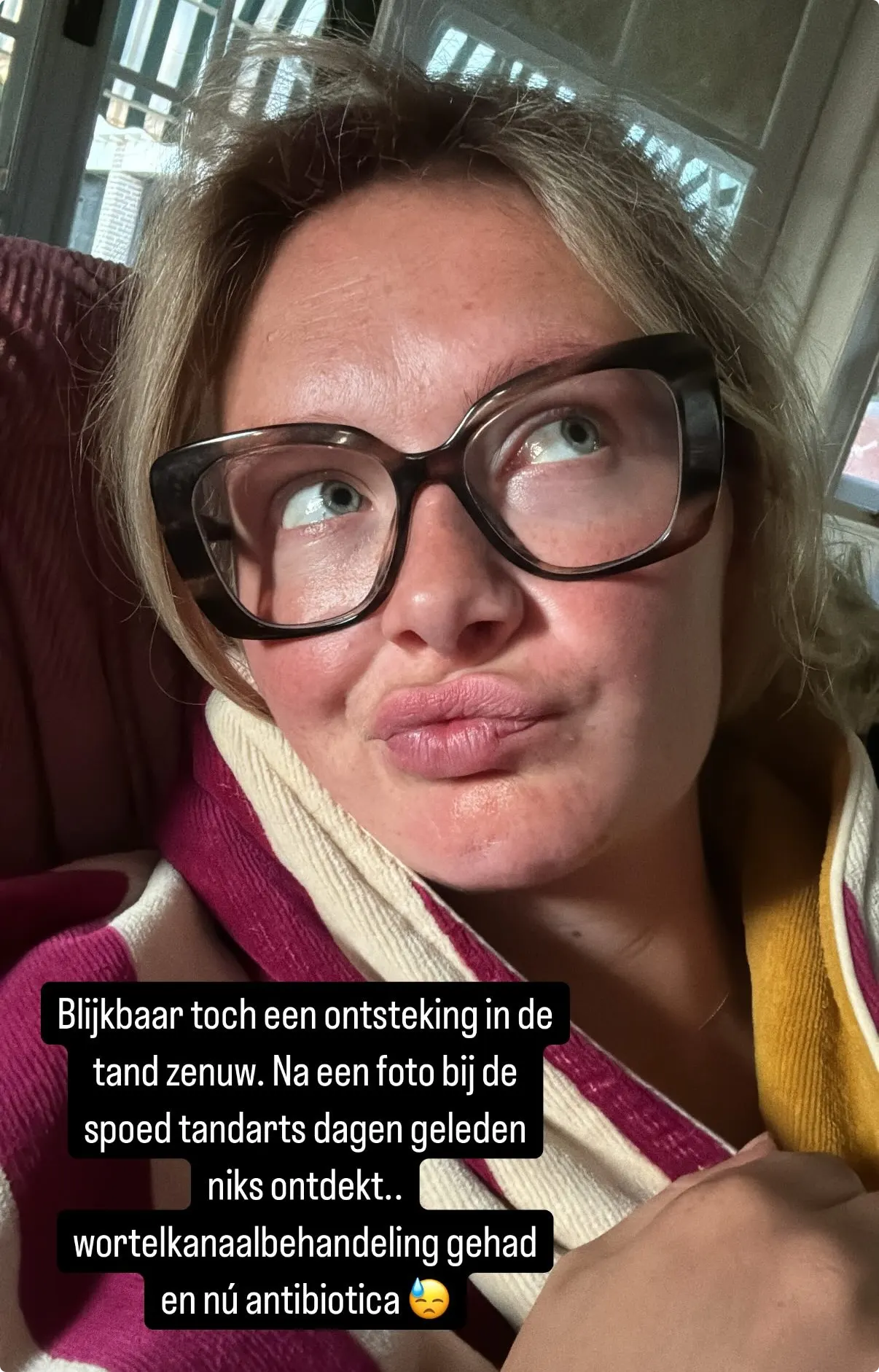 Op Instagram laat Maxime zien wat er aan de hand is en ze vertelt dat ze nu aan de antibiotica zit.