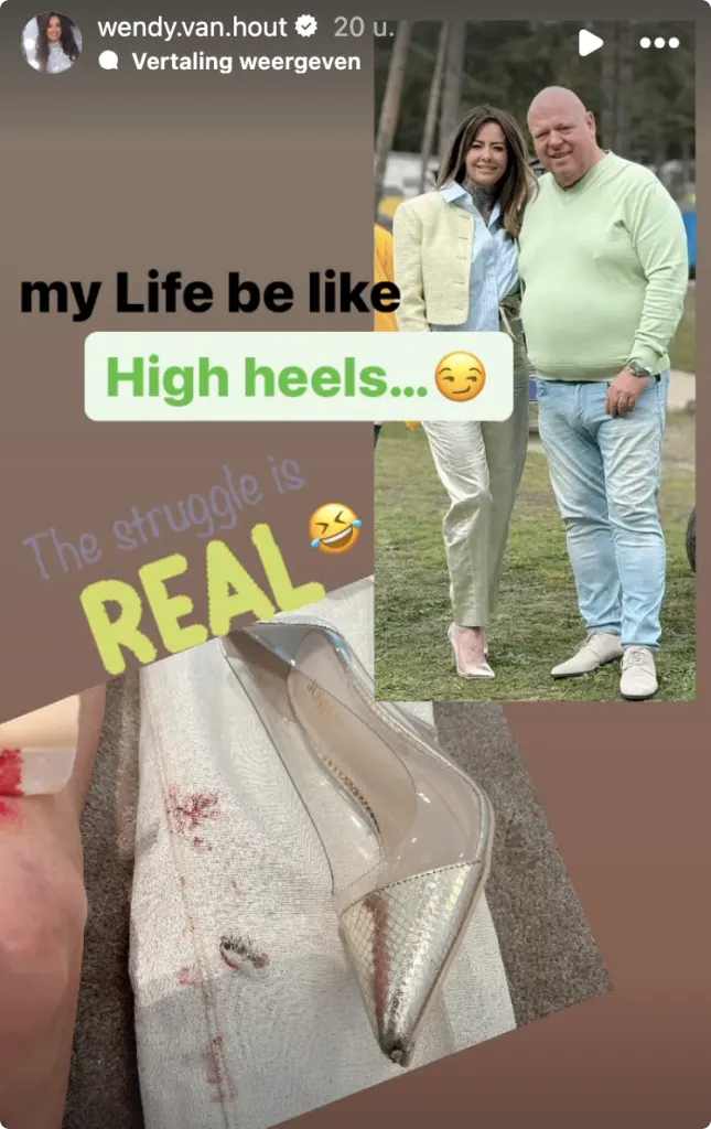 "My life be like…", schrijft de vriendin van Peter Gillis op Instagram Stories bij een foto waar ze hoge hakken draagt. "The struggle is real."