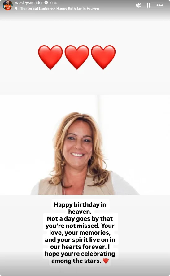 Wesley Sneijder laat donderdag emotioneel van zich horen. Zijn moeder Sylvia zou jarig zijn geweest en daar staat hij uitgebreid stil bij.