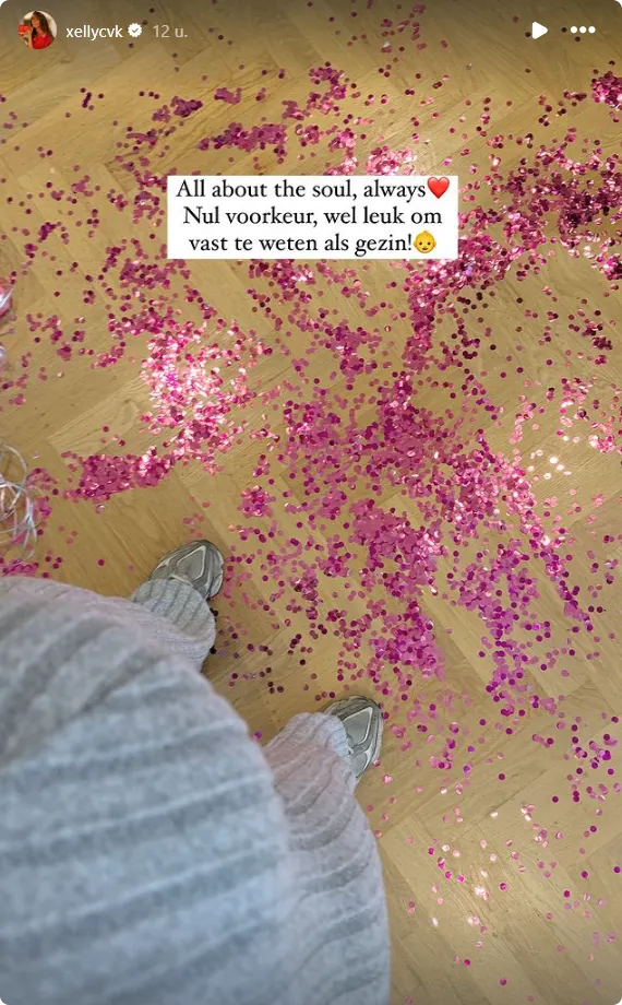 "Het gaat om de ziel, altijd. Nul voorkeur, wel leuk om vast te weten als gezin", zo schrijft Xelly in haar Instagram Stories. Te zien is dat er roze confetti op de grond ligt, wat betekent dat Xelly en Beer een meisjes krijgen.