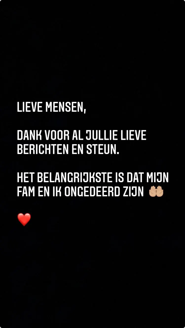 "Lieve mensen, dank voor al jullie lieve berichten en steun", schrijft de rapper op Instagram. Zoals de rapper eerder al liet weten in de video bovenaan deze pagina, zijn hij en zijn familie ongedeerd.