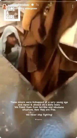 Yolanthe deelde in haar Instagram Stories beelden van jonge meisjes. Ze schreef daarbij: "Deze minderjarigen zijn ontvoerd en op jonge leetijd dagelijks verkracht en misbruikt. We bevrijden ze uit deze verschrikkelijke en onmenselijke situaties." Ze sluit af met: "Nu zijn ze vrij. We stoppen nooit met vechten!"
