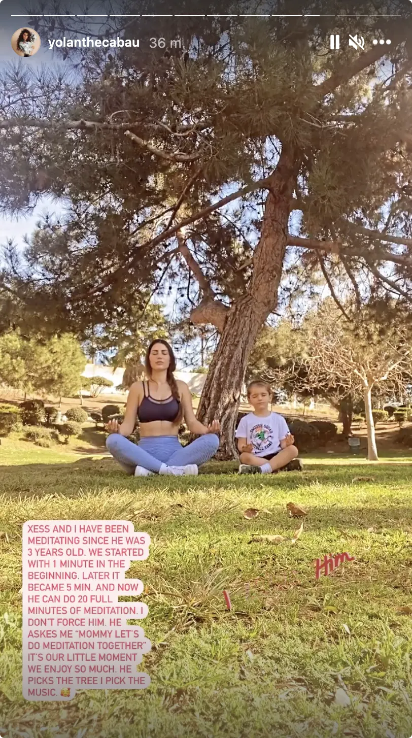 Zo schrijft ze in haar Instagram Stories: "Xess en ik mediteren al sinds hij drie jaar oud was. We begonnen met een minuut op het begin. Later werd het vijf minuten en nu kan hij al vol 20 minuten mediteren."