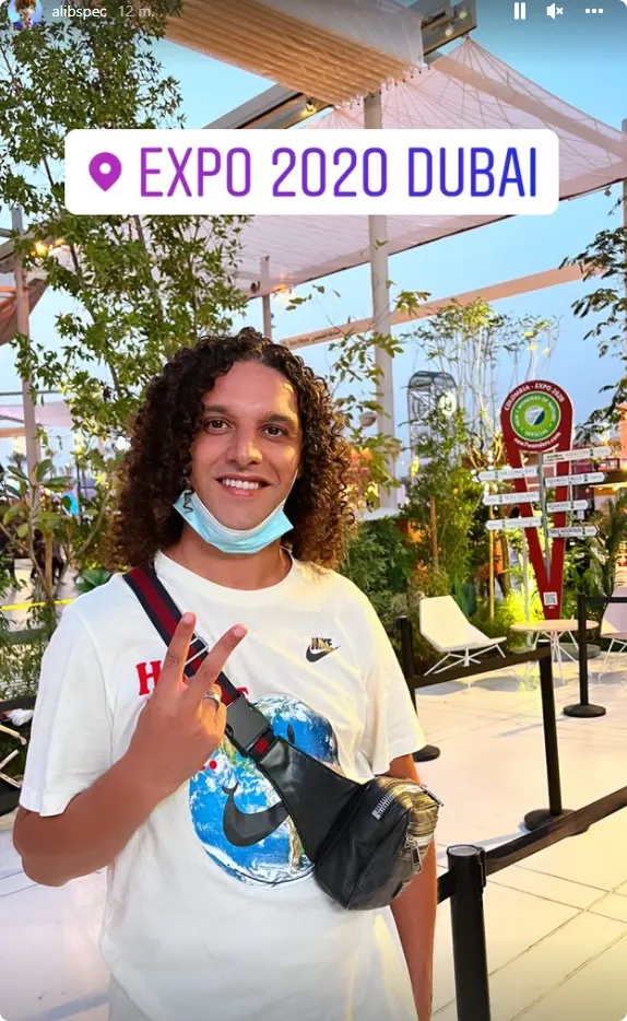 Ali deelt de onderstaande foto van zichzelf bij de Expo 2020 in Dubai. Hij steekt daarbij twee vingers in de lucht, (toevallig?) ook het logo van The Voice.