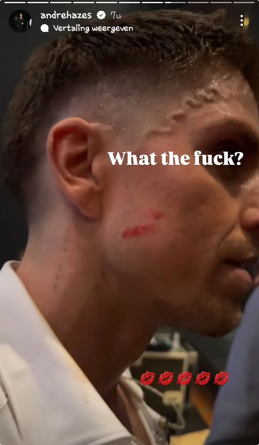 "Ik weet niet of ik een dokter in mijn volgerslijst heb, maar ik heb altijd een soort ader aan deze kant", begint André terwijl hij zijn klacht laat zien. De zanger heeft er naar eigen zeggen geen last van, maar het wordt erger als hij zich heeft ingespannen. Daarna laat hij een foto zien van na zijn optreden, waarop de zwelling goed zichtbaar is (zie onderstaande foto). "Zie je dat, dat is toch echt niet normaal? Wat is dit? Is dit gevaarlijk, ontploft hij ooit? Help me!" aldus een radeloze André.