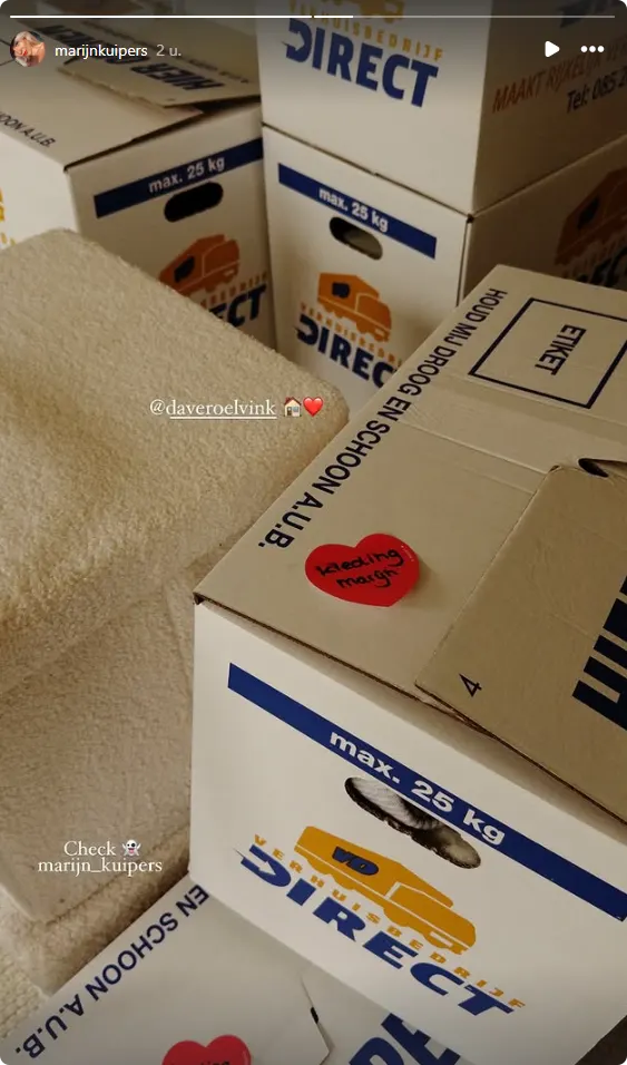"Wat gaan we doen?", vraagt Dave aan liefje Marijn in een Snapchat-filmpje. "We gaan verhuizen... Samenwonen!", reageert Marijn dolenthousiast. "Ik heb dus gisteren gehoord om 17.00 uur dat we het huis hadden", begint Dave, waarop Marijn aanvult: "En om 22.00 uur stond alles ingepakt." (Zie de video hierboven)