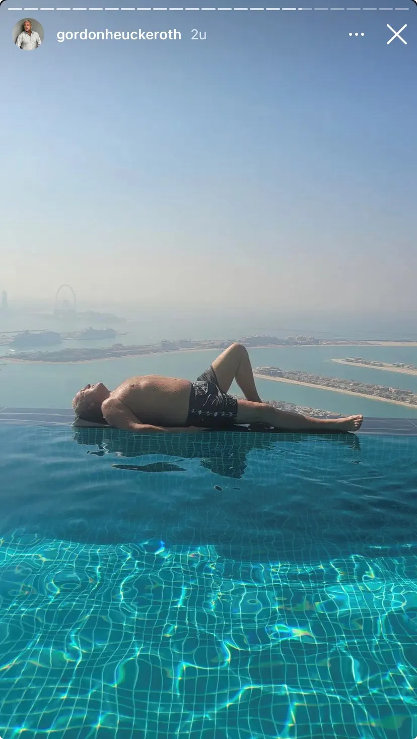Gordon is flink van de zon aan het genieten in Dubai. De artiest deelt maandag een pikant kiekje vanuit het zwembad...