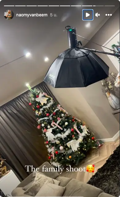 Voor een fotosessie laat Rico zijn handen liefkozend rusten op de buik van de blonde schone. Ze wordt liefdevol omringd door de sterkte armen van de kickbokser. Bij een volgende story is een mooie opgetuigde kerstboom te zien. "The family shoot", schrijft Naomy erbij.