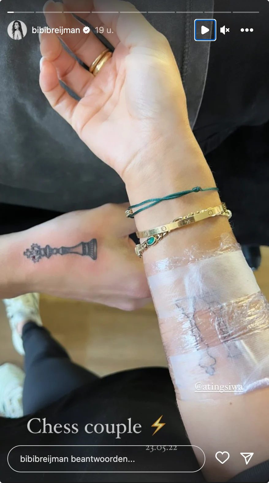 Waylon en Bibi zijn samen de ouders van dochter Teddy en zoontje Chester. Een aantal jaar terug bij de geboorte van Teddy, lieten de twee al een tattoo zetten van haar naam. Dinsdag werd er opnieuw de naald in de huid gezet van Waylon en Bibi. Ditmaal lieten ze Chester vereeuwigen met een tattoo van een schaakspel. "Chess couple", schrijft Bibi bij een foto van haar gloednieuwe tattoo in haar Instagram Stories.