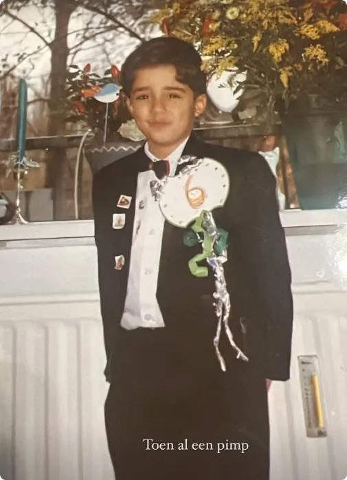 "Toen al een pimp", schrijft de presentator, die ook te zien was in het huidige seizoen van Expeditie Robinson (zie video).