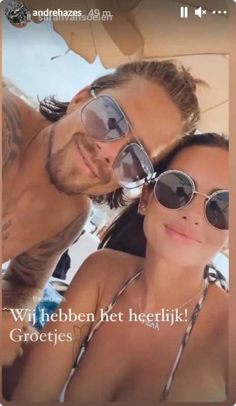 André Hazes is ongelooflijk trots op zijn vriendin Sarah van Soelen. Tijdens hun vakantie maakt hij veel beelden van zijn vriendin op het strand en deelt die met de buitenwereld. Al vindt ze dat zelf soms niet zo fantastisch...