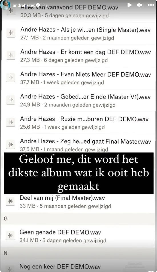 De volkszanger, die onlangs een nieuw kapsel nam (zie video), deelt welke nummers er onder andere op zijn nieuwe plaat lijken te gaan verschijnen. "Geloof me, dit wordt het dikste album wat ik ooit heb gemaakt", schrijft hij erbij.