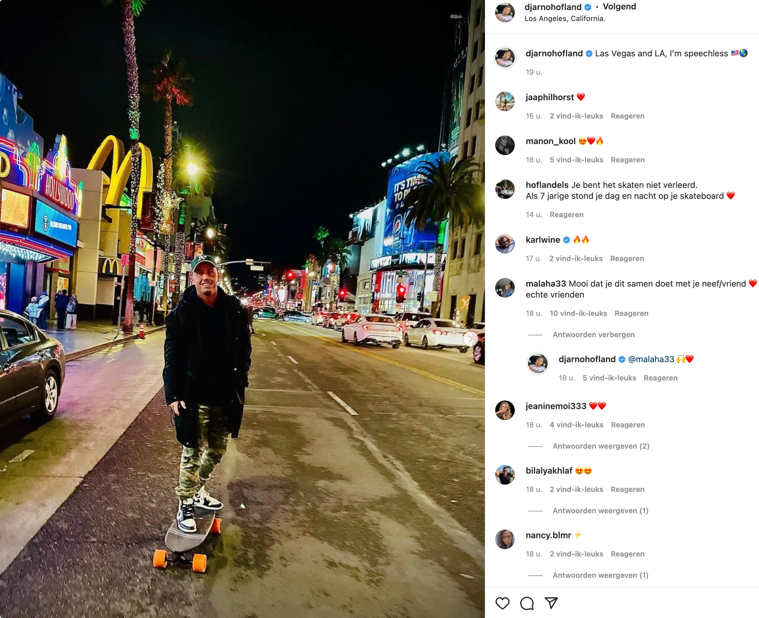 UPDATE: Djarno heeft op Instagram zelf foto's gepost van zijn verblijf in Amerika en in een reactie (zie post hieronder) valt op te maken dat hij daar samen met André zat: