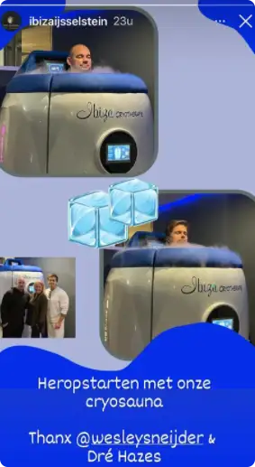 De zanger en de voetballer zijn naar een schoonheidssalon in IJsselstein afgereisd. Hier gingen ze allebei in een zogenaamde 'cryosauna'.