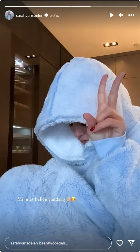 Op haar Instagram deelt ze een foto in haar story waar in ze vertelt dat het niet goed met haar gaat. Ze schrijft: "Vannacht zo beroerd geworden, dus ik loop nu als een kip zonder kop, verslagen en met de kans dat ik misschien flauwval in de Appie... Wat een hel!"