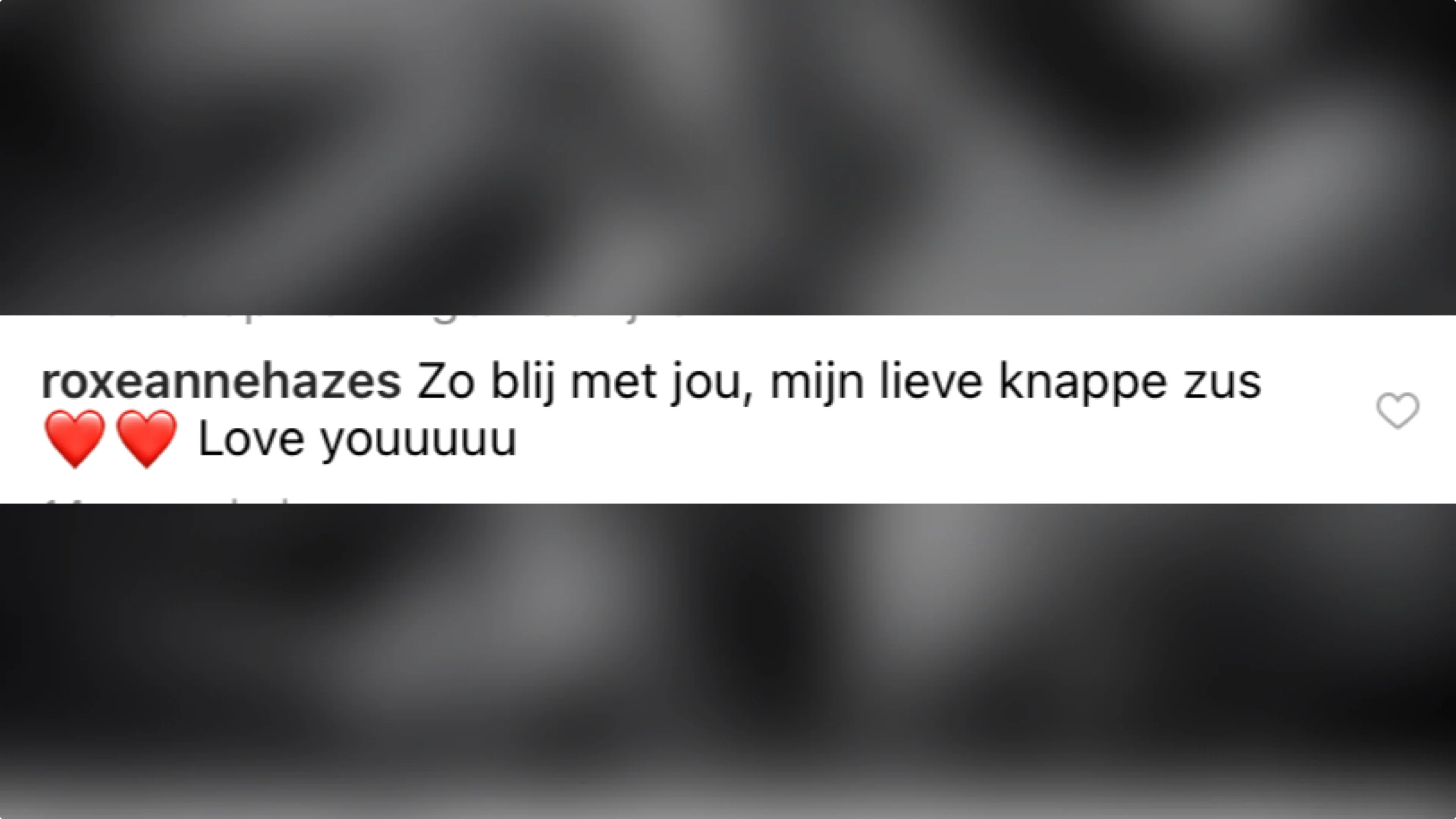 Roxeanne reageert op haar beurt onder de post: "Zo blij met jou, mijn lieve knappe zus. Love you."
