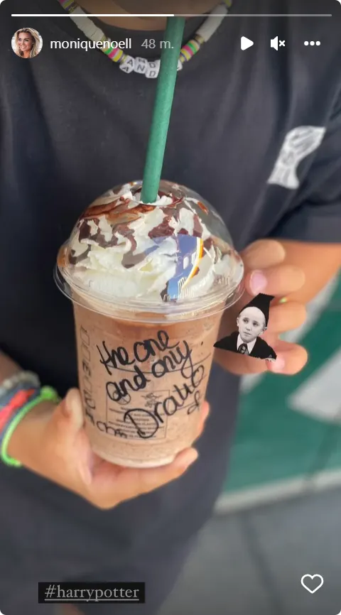 Op Instagram deelt zijn moeder Monique Westenberg dat zij een drankje heeft gehaald met haar André in de koffiezaak. De 'kleine jongen' houdt het bekertje in zijn handen, waar een naam staat opgeschreven. Het is echter niet zijn eigen naam.