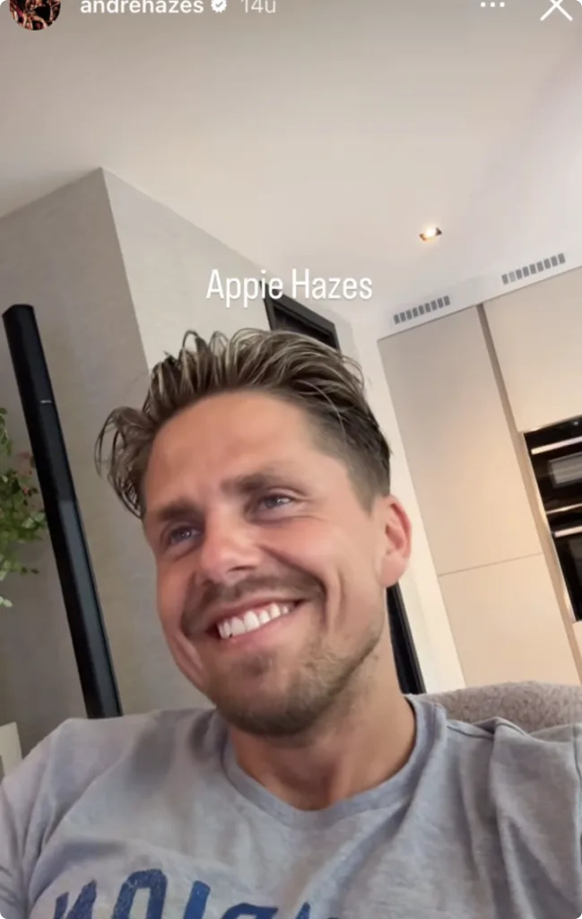 "Appie Hazes", schrijft André bij zijn Instagram Story. Op het platform deelt hij een selfie van zichzelf.