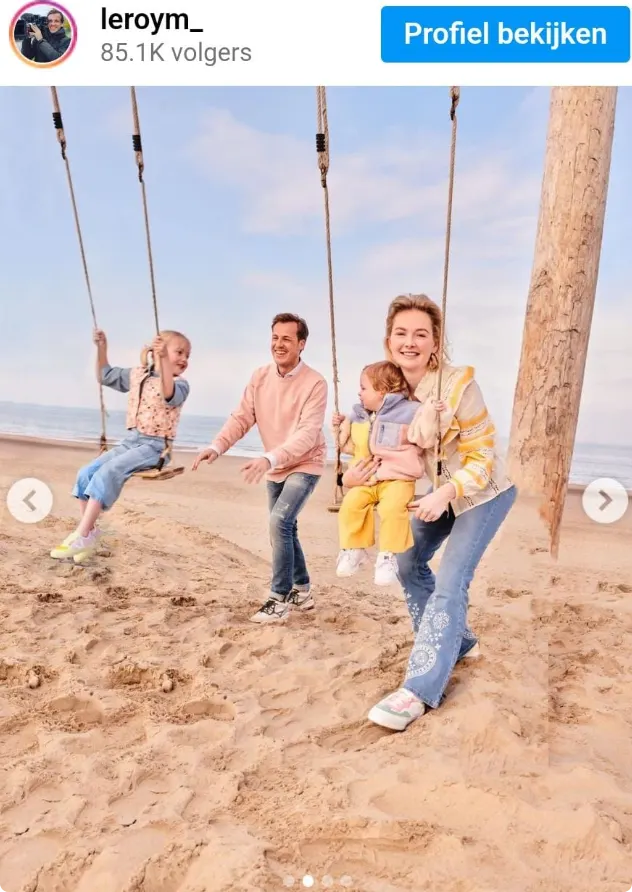 Op zondag zet Leroy een aantal leuke kiekjes van een fotoshoot met hun kinderen Claire en Vivé online. Op de tweede foto uit de reeks is te zien hoe zij gezellig schommelen. Wie echter kijkt naar de paal aan de rechterkant op de foto, ziet dat er een groot deel van ontbreekt.