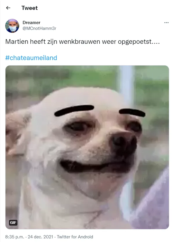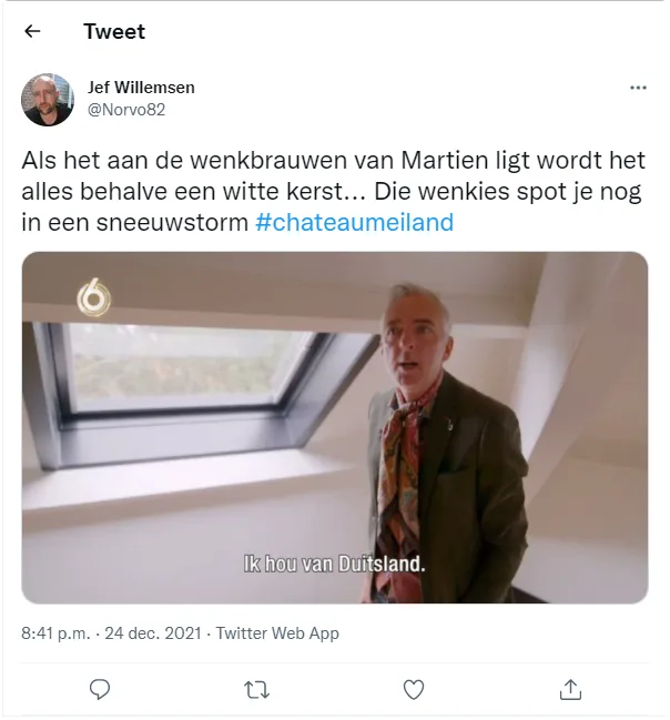 Kijkers hebben op kerstavond 2021 hun ogen uitgekeken tijdens de kerstspecial van de familie Meiland in het Franse skigebied Val Thorens. Niet zozeer om de hysterische familie, maar meer om de geverfde wenkbrauwen van de voormalig kasteelheer.