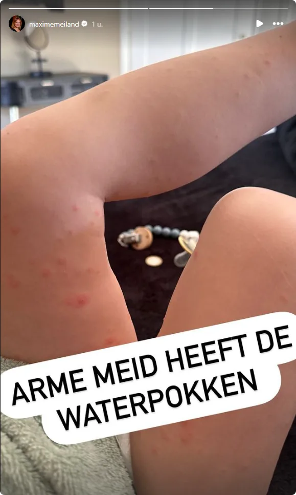 Ze is getroffen door de waterpokken. Maxime deelt een foto in haar Instagram-story van Vivé haar benen vol met bultjes. Ze schrijft bij de foto: "Arme meid heeft de waterpokken."