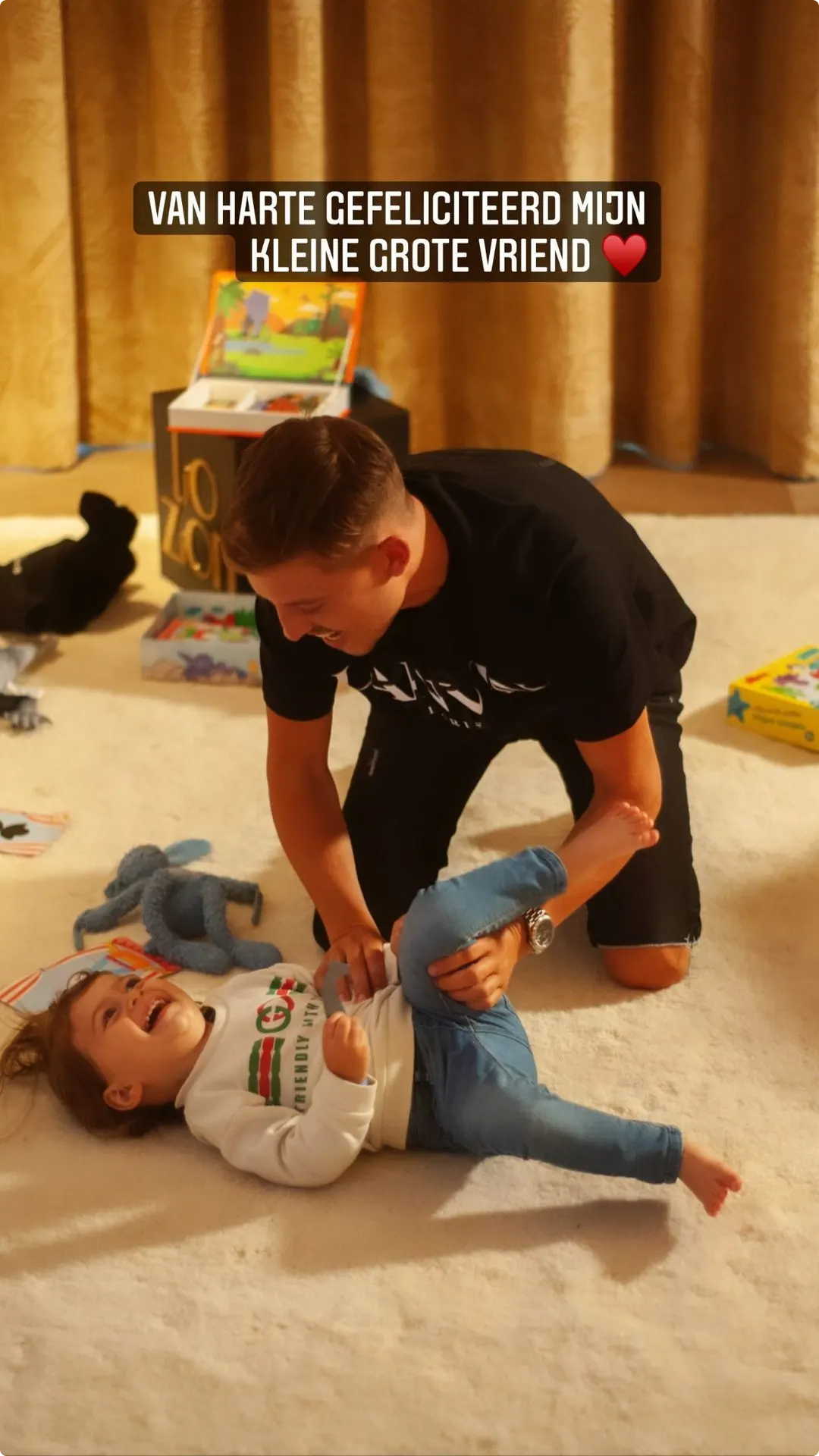 Op Instagram plaatst Lil' Kleine een foto van hem en zijn jarige zoon. De rapper schrijft erbij: "Van harte gefeliciteerd mijn kleine grote vriend".
