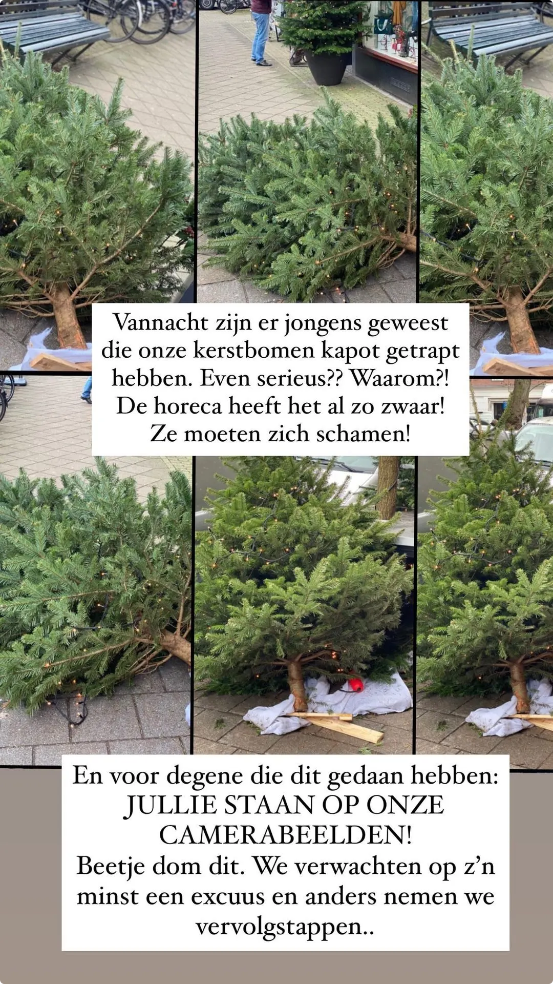 Door de coronacrisis en de maatregelen moet de horeca manieren vinden om aan inkomsten te komen. Nicolette en haar broer zijn zo creatief geweest om in de decembermaand kerstbomen te verkopen voor hun Brasserie Van Dam. Toch gooide een aantal mensen roet in het eten door de kerstbomen te vernielen. "Even serieus? De horeca heeft het al zo zwaar! Ze moeten zich schamen", zet Nicolette boos op haar Instagram.