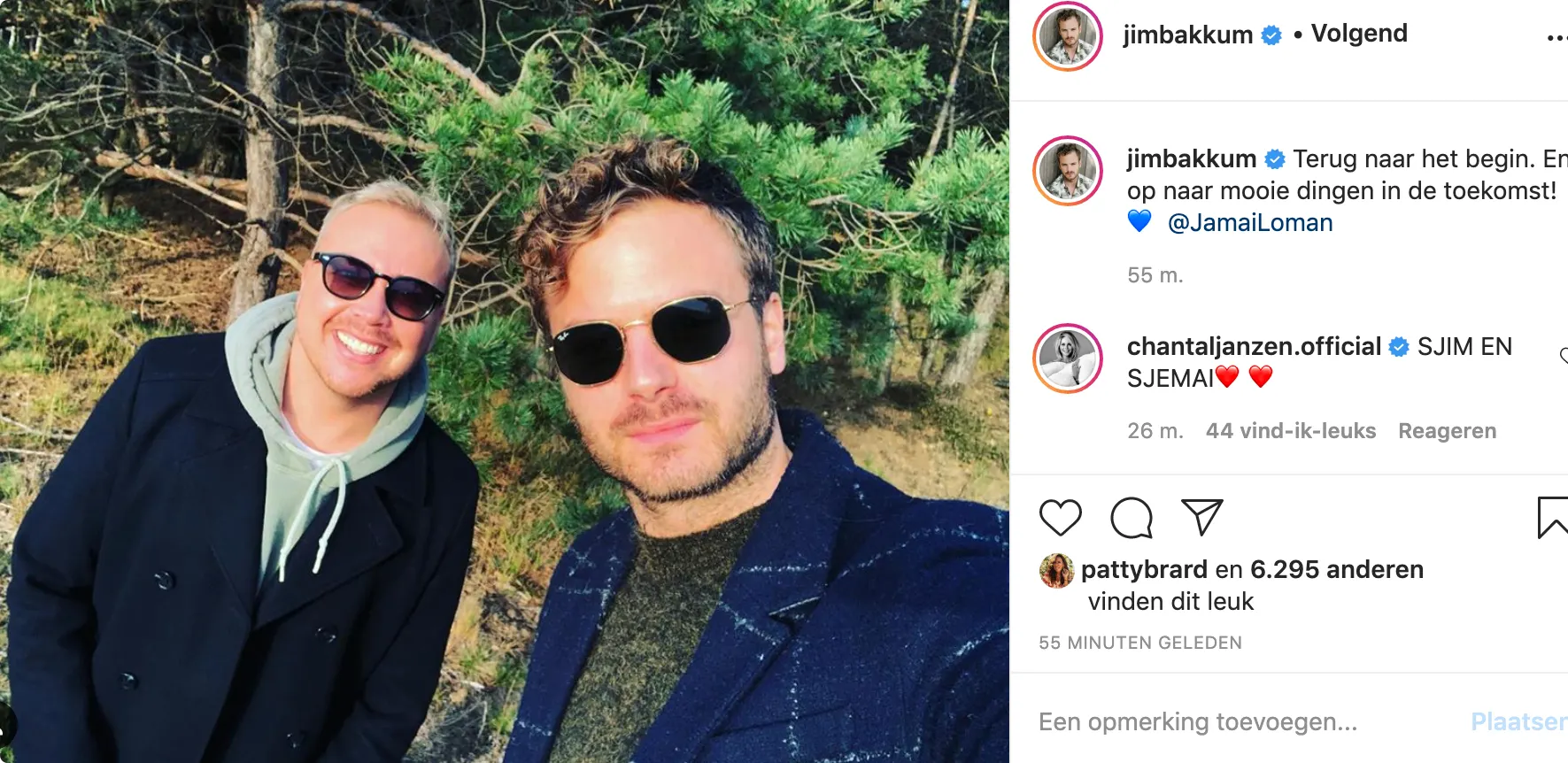 "Terug naar het begin. En op naar mooie dingen in de toekomst!", schrijft Jim bij de foto. En Jamai post bij dezelfde foto: "Mooie herinneringen, nog mooiere toekomst!"
