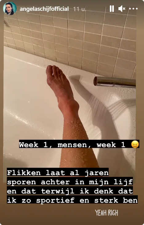 'Eva van Dongen', zoals ze in de serie heet, laat zien hoe heftig het er tijdens de opnames aan toe gaat. "Week 1, mensen, week 1", schrijft ze bij de onderstaande foto. "Flikken laat al jaren sporen achter in mijn lijf en dat terwijl ik denk dat ik zo sportief en sterk ben."