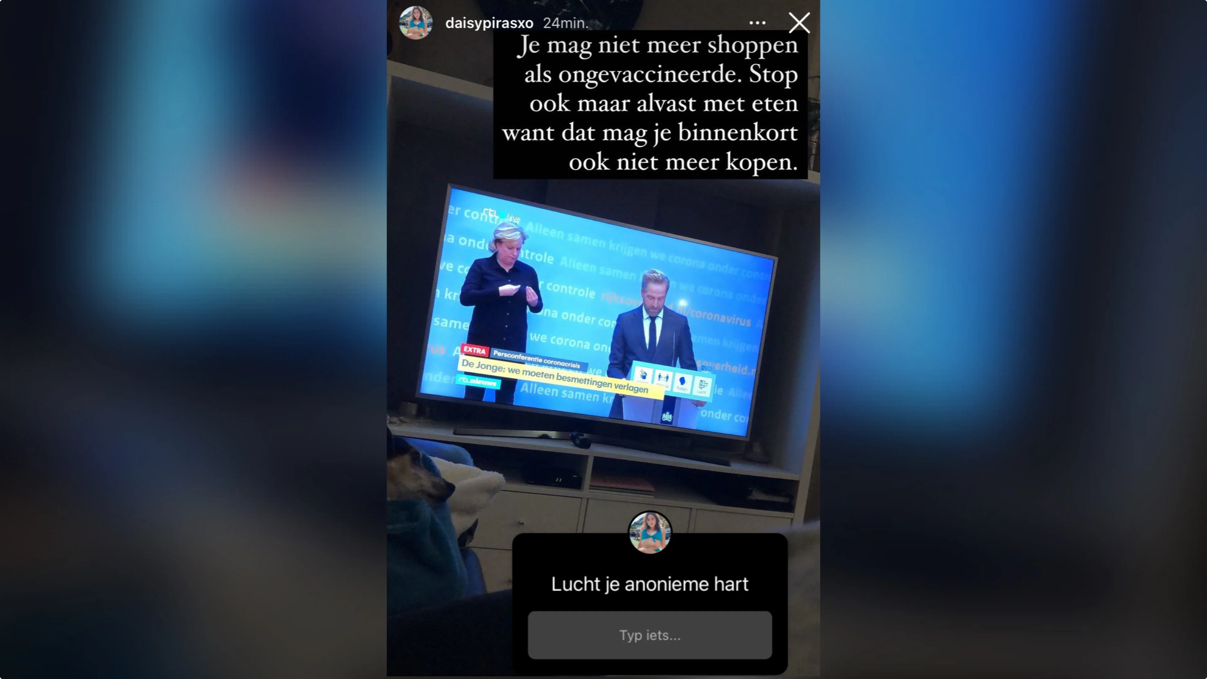 Temptation Island-ster Daisy Piras ziet het somber in. "Je mag niet meer shoppen als ongevaccineerde. Stop ook maar alvast met eten, want dat mag je binnenkort ook niet meer kopen."