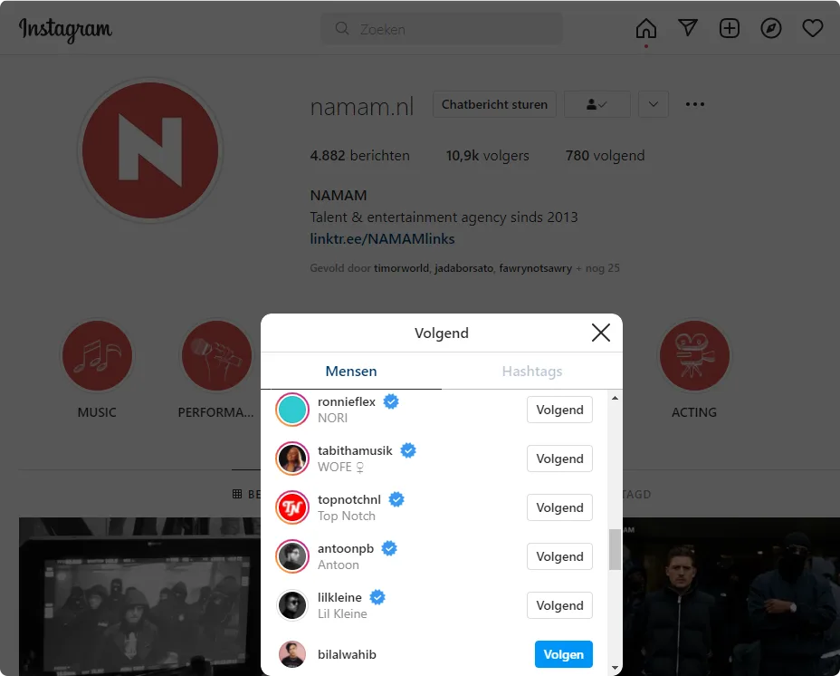 Het managementbureau volgt het account overigens ook, zo is op onderstaande foto's te zien.