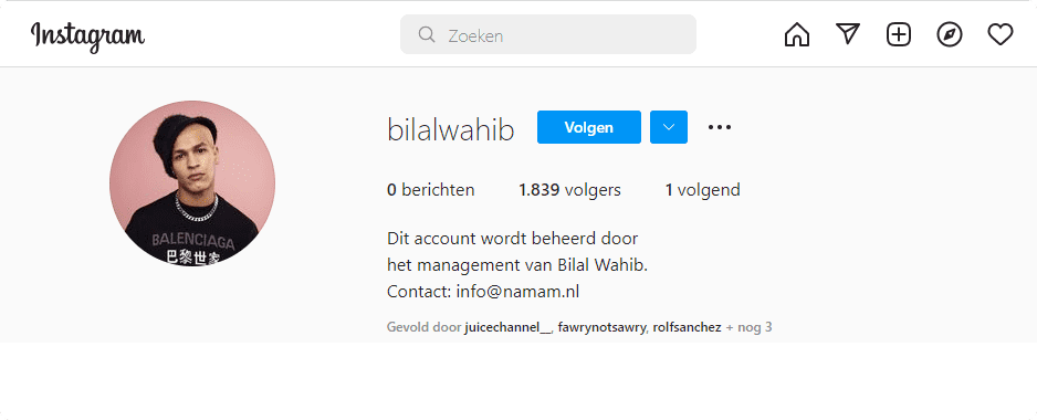 Bilal Wahib lijkt na bijna een jaar terug teruggekeerd op Instagram. Althans, er is een account aangemaakt dat door zijn management wordt beheerd.