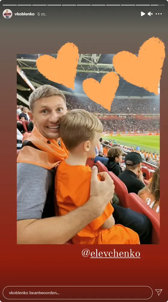 Zo was Victoria Koblenko vanavond in het stadion met haar man Evgeniy Levchenko en zoon Kiy. Ze deelt een schattig kiekje van de blije mannen.