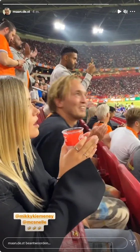 Ook rapper Yes-R deelt beelden van de voetbalwedstrijd in zijn stories. Oranje won de wedstrijd met 6-1.