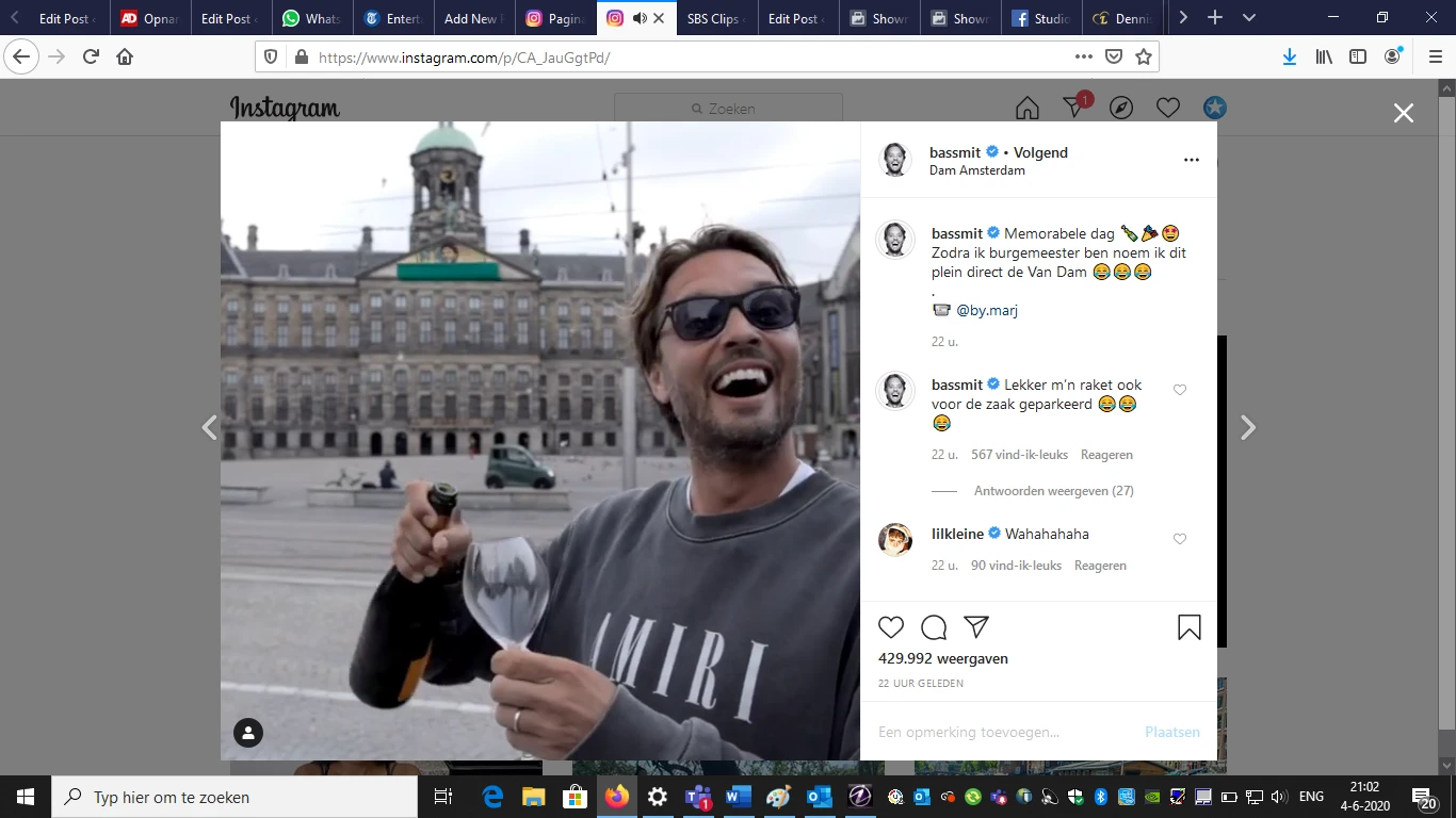 In de video bovenaan zie je hoe Bas 'onthulde' dat hij de nieuwe burgervader van de hoofdstad wilde worden. "Memorabele dag. Zodra ik burgemeester ben noem ik dit plein direct de Van Dam", luidde zijn hilarische tekst erbij.