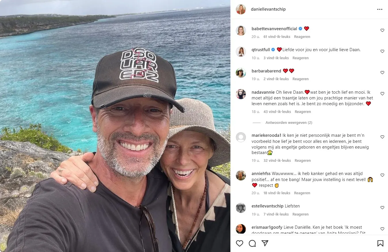 "Bon Dia! Op Bonaire voor zon, zee en meer healing. Zo een goed idee van John van 't Schip", begint Daniëlle haar verhaal op Instagram. Vervolgens legt ze uit dat het geen makkelijke beslissing was om te vertrekken naar het eiland. "Het was begin maart 2023 na een jaar het huis in Naarden weinig uit te zijn geweest, alleen voor behandelingen of ziekenhuisbezoeken. Of rondje huis in een dekbed jas trillend van de kou zei John “je hebt Bonaire energy nodig.” Ik ging gelijk heel hard huilen want ik voelde jaaaaaaa dat klopt ik had er de hele winter al van gedroomd maar dacht dat ik te zwak zou zijn om de reis aan te kunnen. But I made it. "