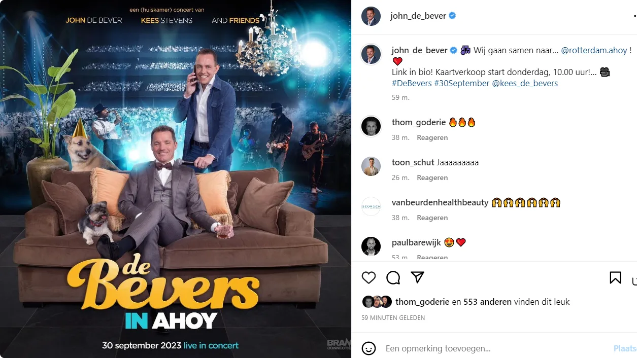 John de Bever en zijn partner Kees Stevens staan eind september samen in Rotterdam Ahoy. De twee organiseren in de kleinere concerthal RTM Stage "een groots muzikaal meezingfeest" met verschillende gastartiesten.
