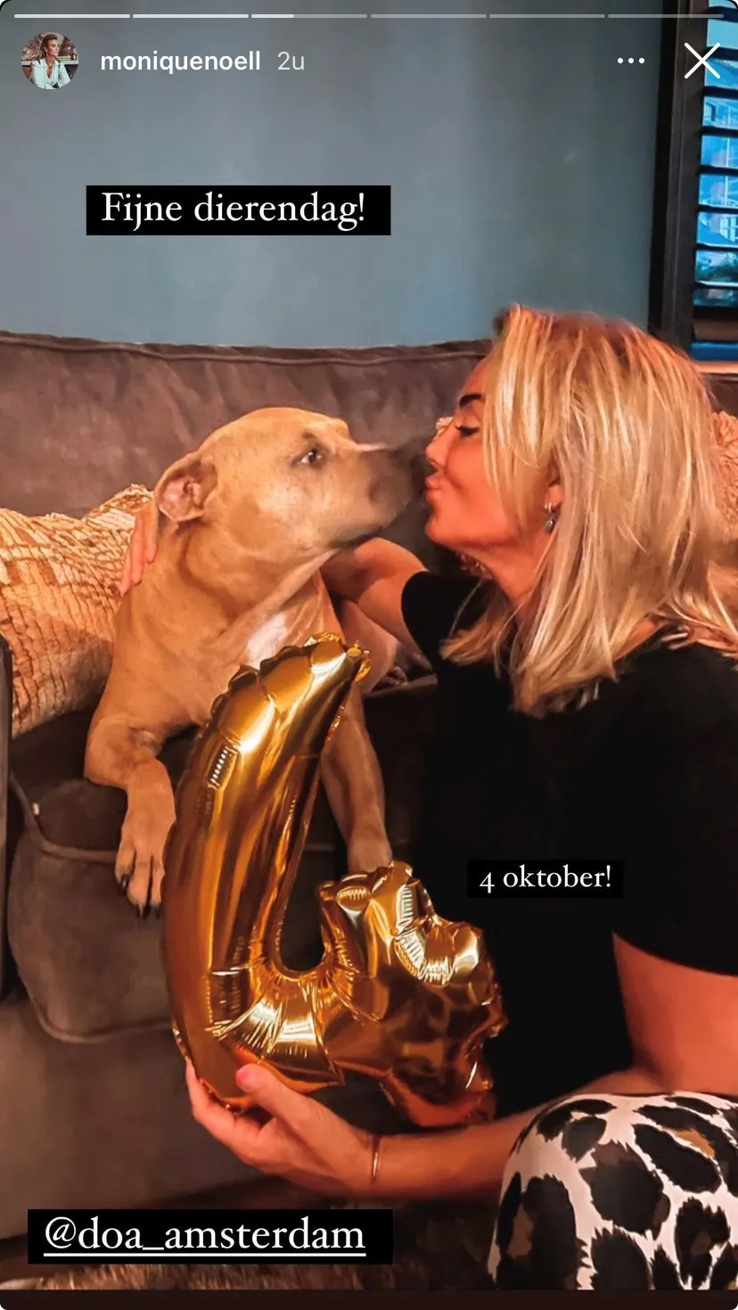 Zo wenst Edsilia Rombley haar trouwe viervoeter Linnymoon een fijne dag: ''Fijne dierendag! Love my doggy Linnymoon!''