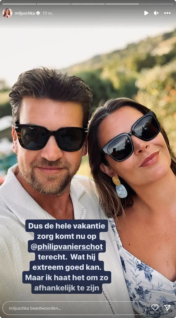 Ook liet Miljuschka weten dat ze enorm veel steun krijgt van haar partner. "Dus de hele vakantiezorg komt nu op @philipvanierschot terecht. Wat hij extreem goed kan. Maar ik haat het om zo afhankelijk te zijn."
