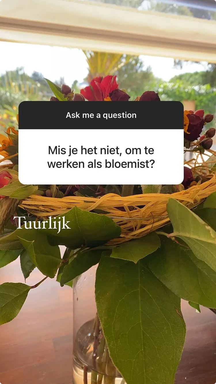 Op Instagram krijgt Famke de vraag of ze het mist om bij de bloemist te werken. Ze reageert daarop met het antwoord: "Tuurlijk."