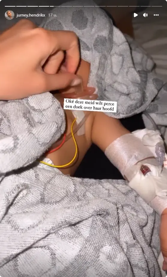 Een heftig beeld van een baby vol slangetjes en pleisters wordt vervolgens zichtbaar op de story, bekijk een snapshot daarvan hieronder.