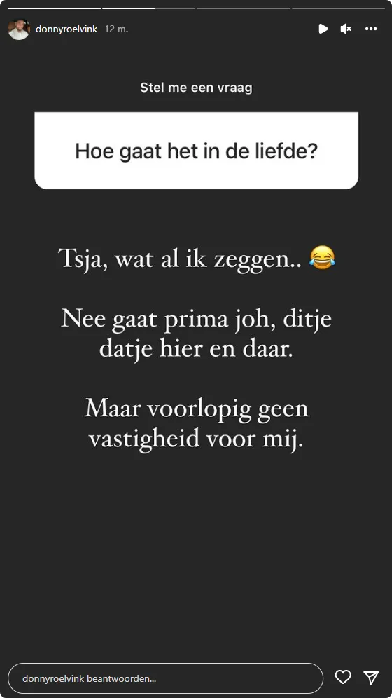 Donny Roelvink geeft op social media een update over zijn liefdesleven...