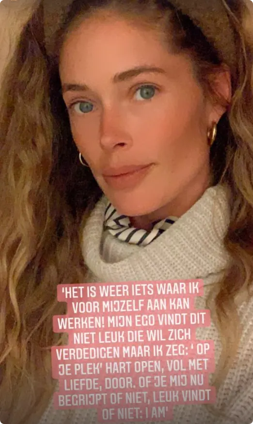 Wat ze ermee bedoelt, is niet helemaal duidelijk. Dit is wat Doutzen op haar Instagram Stories schrijft: "Het is weer iets waar ik voor mijzelf aan kan werken! Mijn ego vindt dit niet leuk, die wil zich verdedigen."