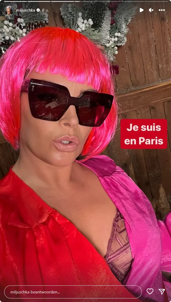"Ik ben in Parijs", schrijft de foodexpert bij een foto waar ze een roze pruik draagt. Het is niet precies duidelijk waar de vermomming voor is. Wellicht voor een rolletje in de nieuwe musical Moulin Rouge? De influencer houdt het mysterieus.