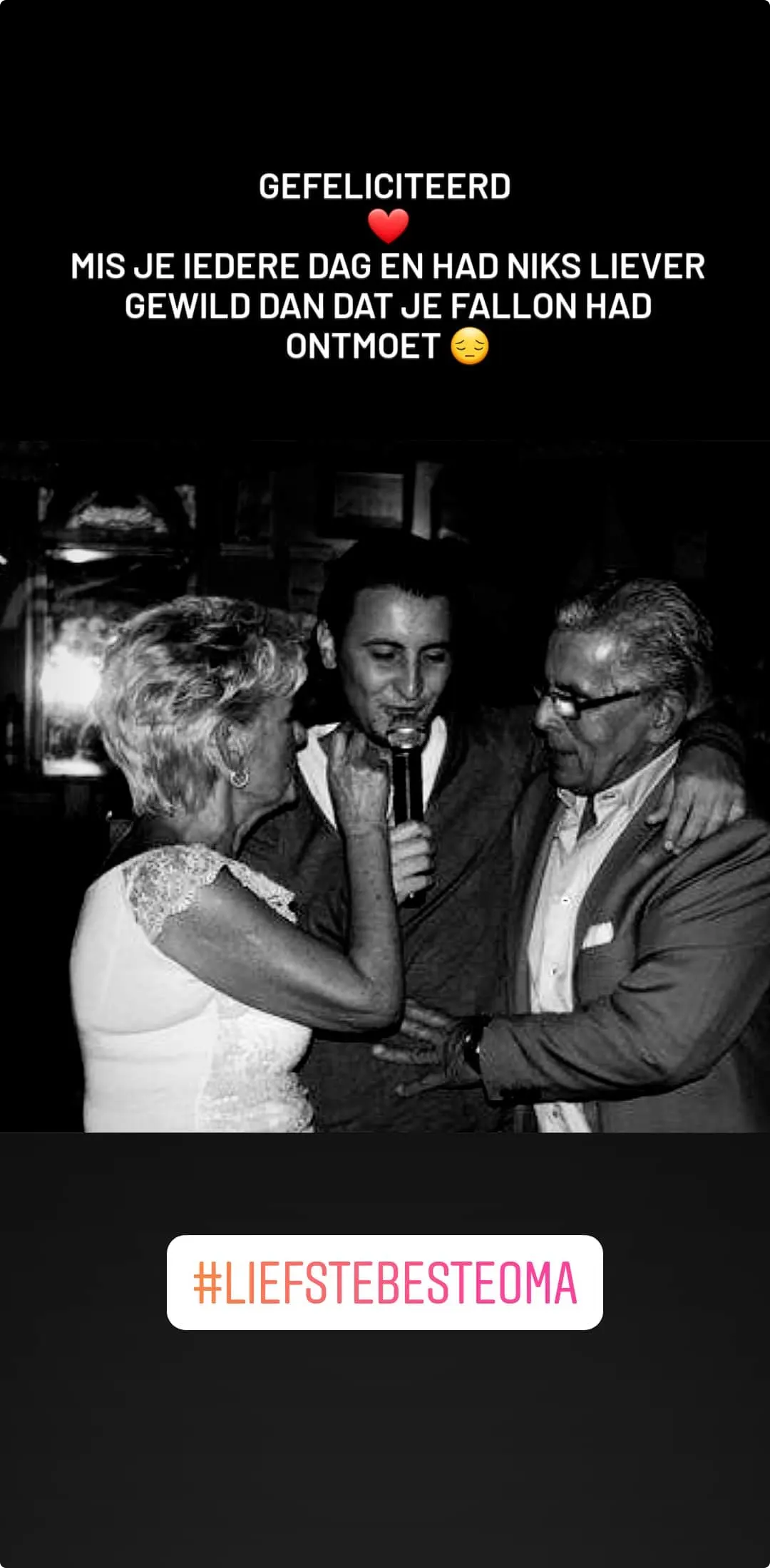 Op Instagram post Danny een foto van zijn grootmoeder in zijn Stories. Hij schrijft er 'Gefeliciteerd' bij met een hartje. "Mis je iedere dag en had niks liever gewild dan dat je Fallon had ontmoet." Hij plaatst er ook nog de hashtag #liefstebesteoma bij.