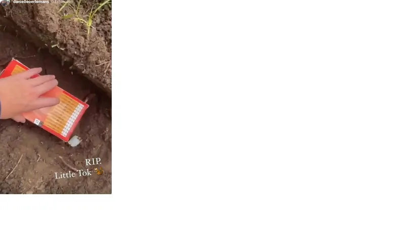Maar helaas heeft ze daarbij ook rotnieuws: "Helaas is zijn broer gisternacht overleden. Hij had al problemen sinds de dag dat we hem redden, maar hij heeft het niet overleefd." Op een andere story van Danielle is te zien hoe ze Tok begraven in een doosje.