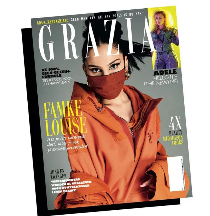 Dit zegt Famke in de nieuwe Grazia. Het voormalig 'Ik doe niet meer mee'-icoon prijkt op de cover van het tijdschrift met mondkapje, zoals je hieronder kan zien.