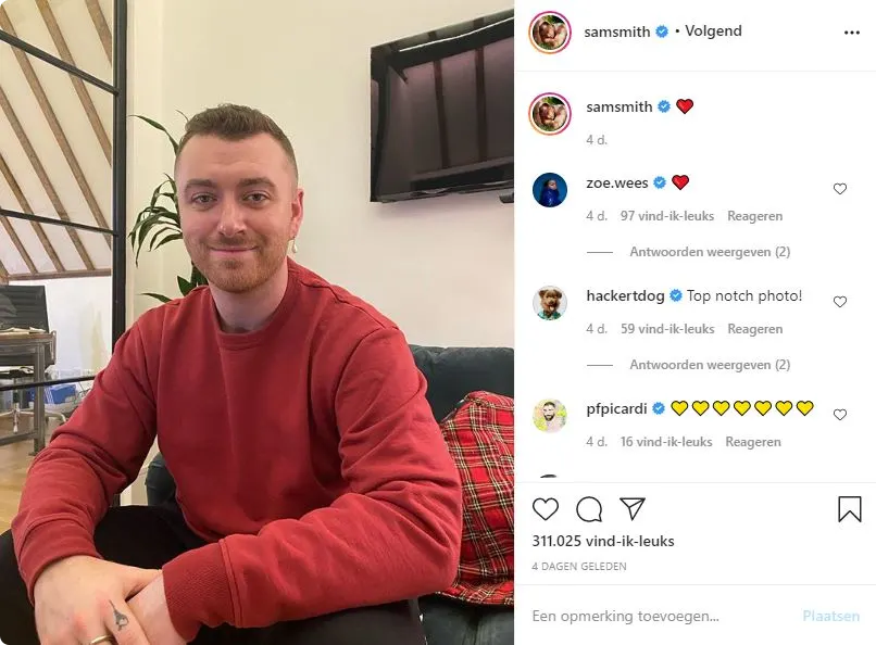 De YouTuber laat nog altijd in het midden om wie het precies gaat. Toch lijken zijn volgers het zeker te weten: hij heeft het over de bekende Britse zanger Sam Smith! Zo luiden enkele reacties: "Sam Smith wedden!", "Whoeee Robbert, Sam Smith?" en "Was de zanger Sam Smith?" Nog iemand anders schrijft: "Ik denk Sam Smith, ze volgen elkaar op Instagram."