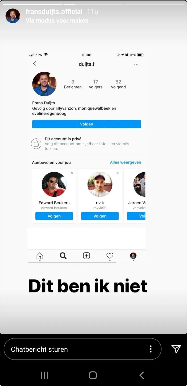 Vervolgens deelt Frans screenshots van de accounts.