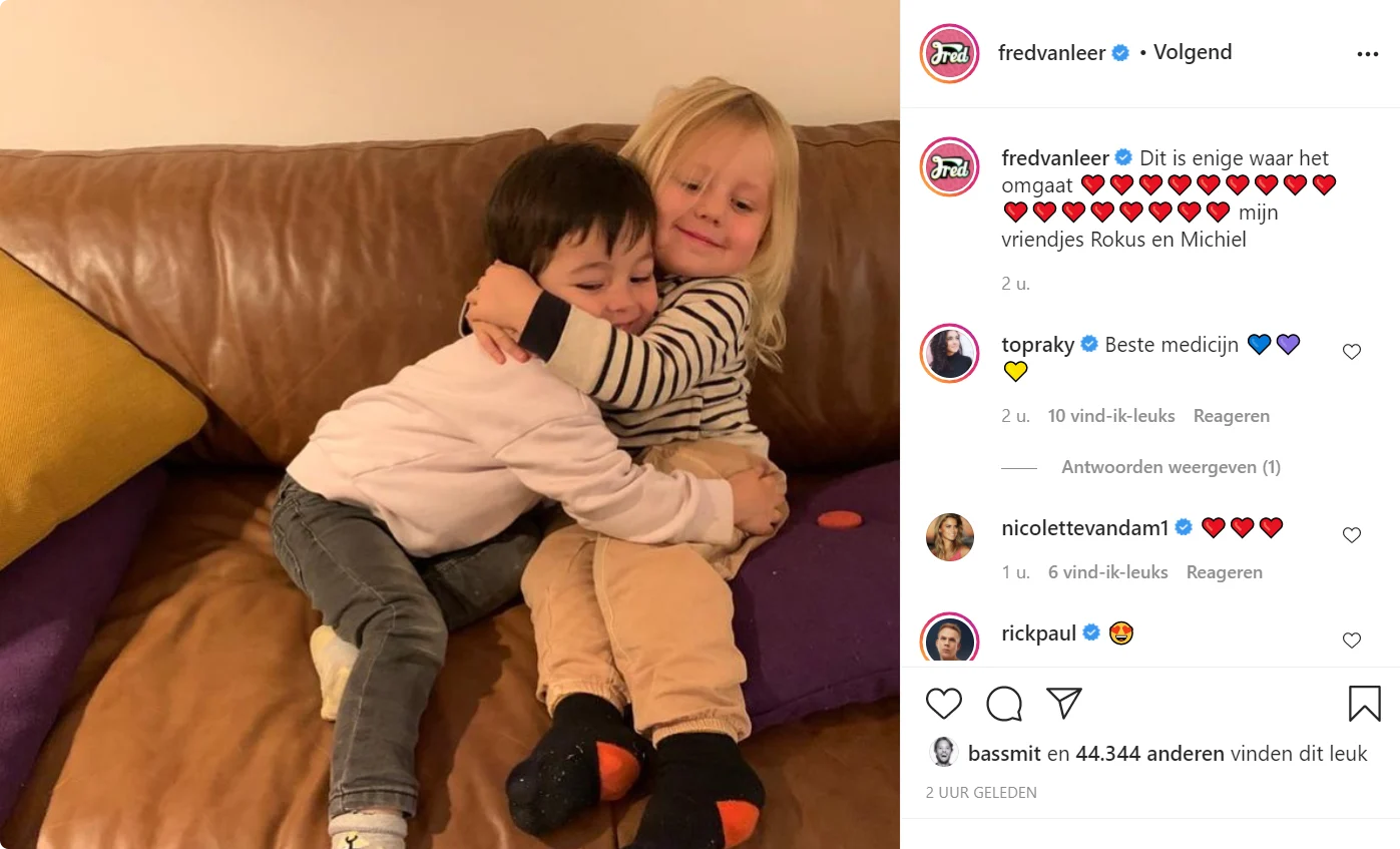 Even later plaatst Fred een post waaruit zijn geluk weer blijkt. "Dit is enige waar het om gaat. Mijn vriendjes Rokus en Michiel", schrijft hij bij de onderstaande foto.